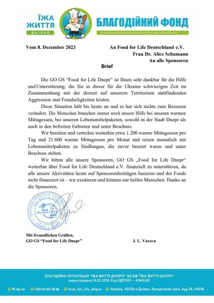 Dankes-Schreiben von FFL-Ukraine:
